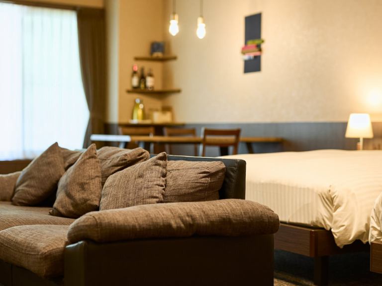 24年改装【源泉内風呂付/川沿】ツイン+和リビングルーム