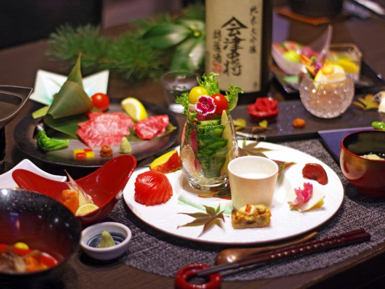 【석식】식당에서 창작 아이즈 향토요리 메뉴 준비.저녁 식사 전 플랜 공통. (자매관 BF 플랜 제외)