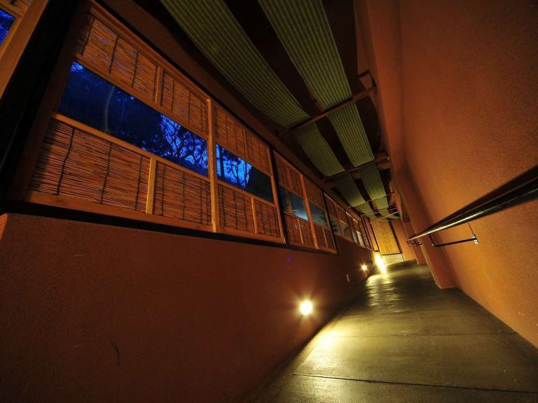방 불이 켜진 밤의 모습.현관을 중심으로…