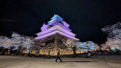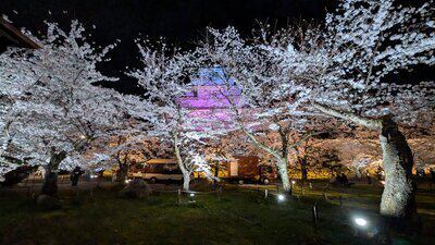 【鶴ヶ城の桜】4月6日満開、ライトアップ中