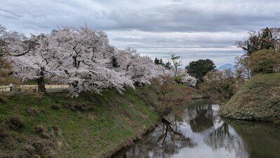 曇りの会津若松ではありましたが、鶴ヶ城の桜が満開でした。